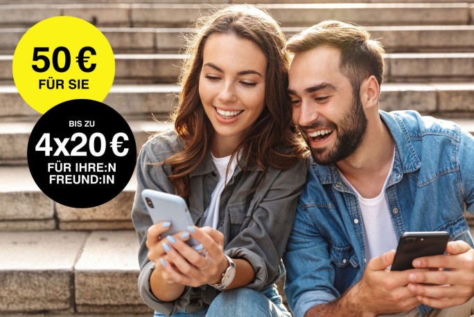 Erzählen Sie jetzt Ihrer Familie, Ihren Freund:innen und Studienkolleg:innen von uns. Für jede Kontoeröffnung erhalten Sie 50 €* Weiterempfehlungsbonus aufs Konto gutgeschrieben.