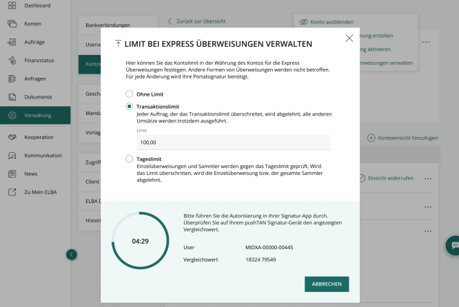 Seit Oktober 2025 können Sie als Firmenkund:in individuelle Limits für Express Überweisungen festlegen, um sich zusätzlich vor Betrug zu schützen.