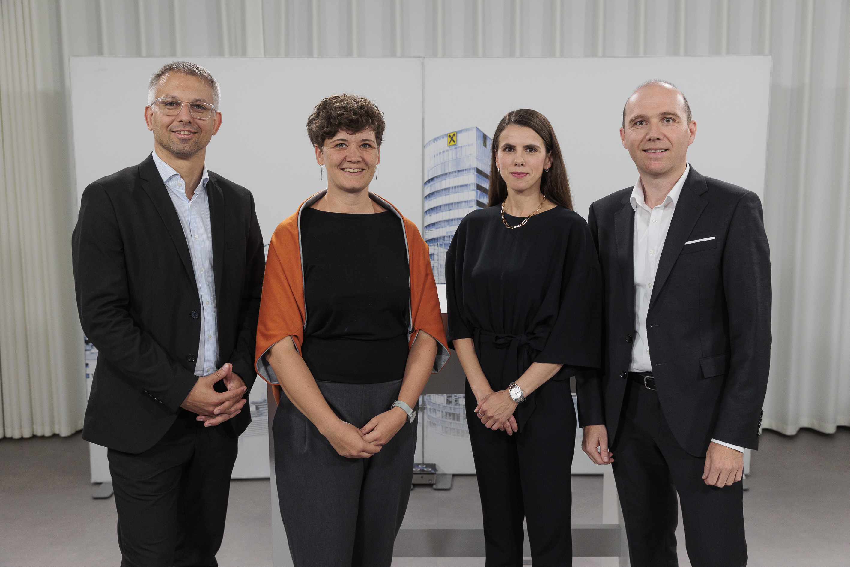 Foto (Credit: Roland Rudolph) v.l.n.r.: Christian Hinterwallner (Head of Equity Research der Raiffeisen Bank International), Lena Gugenberger (Finanzbildungsvermittlerin „Three Coins“), Alina Brunner (Projektleiterin in der Stadtbank) und Markus Plank (Leiter Wertpapierkompetenzzentrum der Raiffeisenlandesbank NÖ-Wien)
