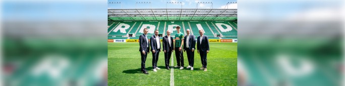 Das Giebelkreuz feiert ein Comeback am grün-weißen Trikot. Die Partnerschaft mit dem österreichischen Fußball-Rekordmeister beginnt mit Juli 2024 und läuft vorerst bis inklusive der Saison 2027/28.