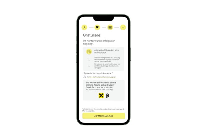 Tätigen Sie in den ersten drei Monaten nach der Kontoeröffnung mindestens fünf Zahlungen pro Monat mit Ihrer Debitkarte (physische Karte oder digitale Karte, z. B. mit RaiPay oder Apple Pay). Je Monat, in dem Sie die fünf Zahlungen erreichen, erhalten Sie 20 € Prämie. Sollten Sie in einem Monat die Mindestanzahl der Zahlungen nicht erreichen, haben Sie im Folgemonat erneut die Chance, die Prämie zu erhalten. Den Fortschritt können Sie in Mein ELBA unter „Meine Erfolge“ beobachten.